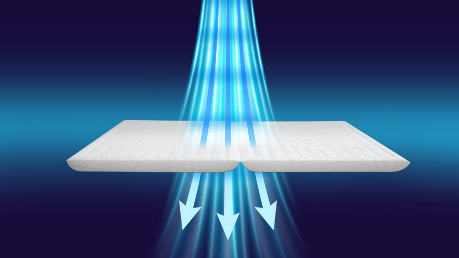 敷きふとん表面には特殊なストライプ凹凸加工を施し、赤ちゃんの体と敷きふとんの間にこもる熱を効率的に発散します。さらに通気性抜群の3次元構造素材により空気の通り道を確保しムレを軽減。